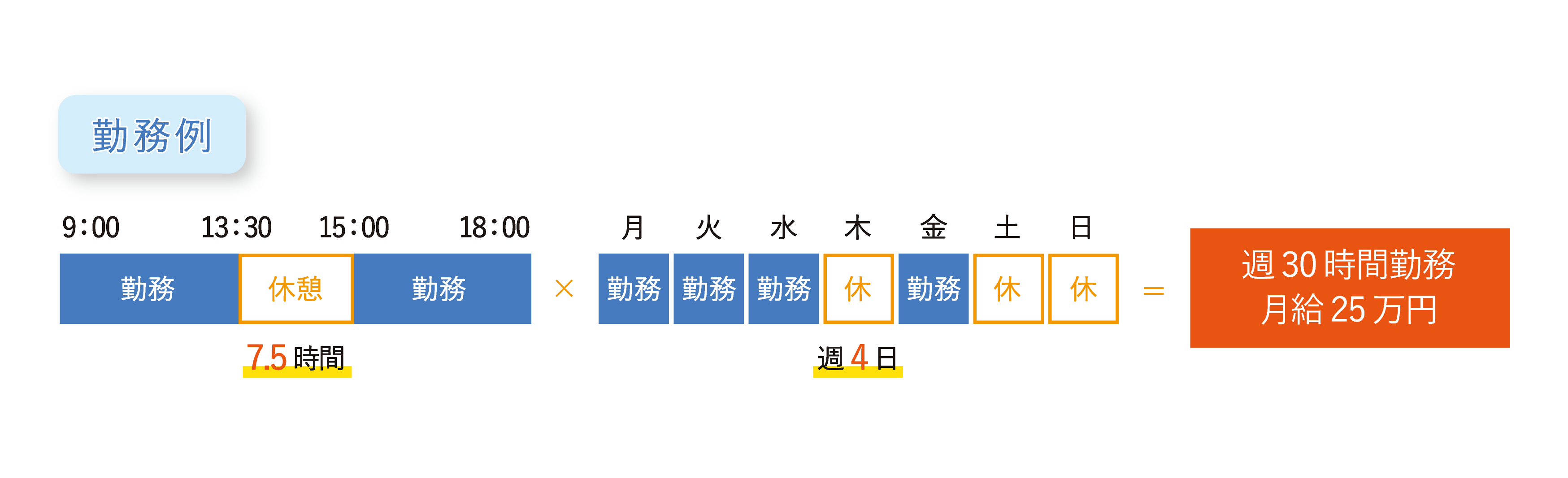 どの勤務体系でも完全週休二日制で残業はゼロ!年間休日は135日以上あり、無理なく仕事とプライベートの両立ができます。